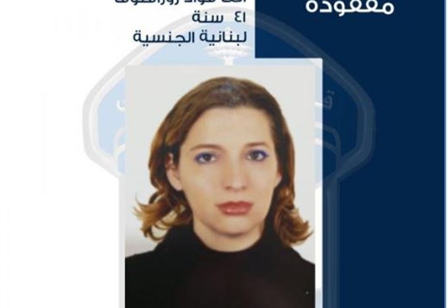 صدر عن المديريّـة العامّة لقـوى الأمن الـدّاخلي ـ شعبة العلاقات العامّـة, اليوم السبت، بلاغٌ جاء فيه: "تُعمّم المديريّة العامّة لقوى الأمن الداخلي، بناءً على إشارة القضاء المختص، صورة المفقودة: أنغا فؤاد زورافلوفا (من مواليد عام 1983، لبنانيّة) التي غادرت، بتاريخ 6-3-2024، منزلها الكائن في المنصورية، ولم تَعُد لغاية تاريخه".