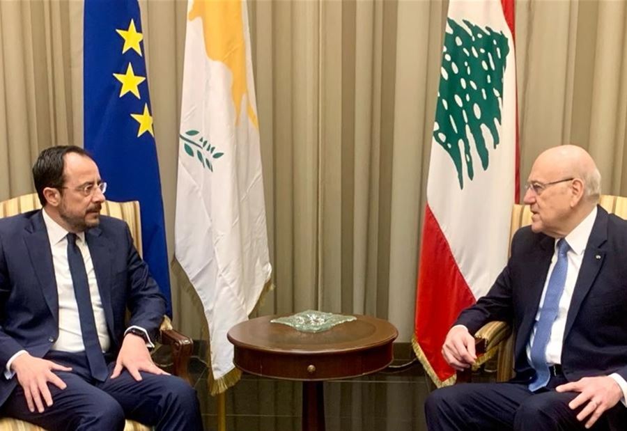 وكان الرئيس القبرصي وصل الى مطار صباحاً، وكان في استقباله في المطار رئيس الحكومة نجيب ميقاتي، ومن هناك انتقلا إلى السرايا.