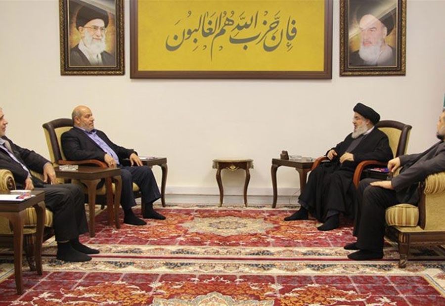 استقبل الأمين العام لحزب الله السيد حسن نصر الله، اليوم الاربعاء، وفدًا قياديًا من حركة المقاومة الإسلامية حماس برئاسة الدكتور خليل الحية وضم الإخوة الأستاذ محمد نصر والأستاذ أسامة حمدان، حيث جرى تقييم موسع ومعمق للأحداث والتطورات القائمة في قطاع غزة خصوصاً وفلسطين المحتلة عمومًا وجبهات المساندة المختلفة.