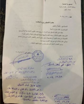 وجاء في نص كتاب البلدية، طلب مؤزارة أمنية: "عطفا على كتابنا السابق رقم 83/2024 وحيث قامت القوى الأمنية بإبلاغ السوريين الذين يجب عليهم الاخلاء، وبعد انقضاء المهلة المعطاة لهم قامت بلدية رشعين بإجراء الكشوفات من جديد فتبيين أن بعضهم قد غادر أماكن السكن، فيما البعض الآخر لم يرحل وعددهم نحو عشر عائلات في حي بيت الغريب وبيت شما. يرجى التفضل الايعاز لمن يلزم لارسال المؤازرة الامنية مع شرطة البلدية لتنفيذ الاخلاء".