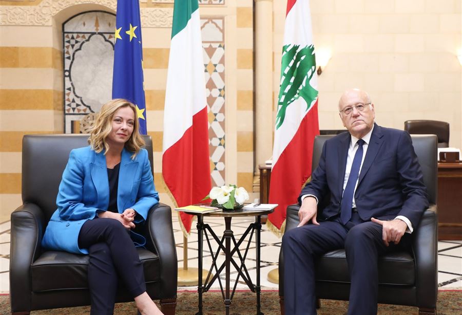 استقبل رئيس حكومة تصريف الأعمال نجيب ميقاتي، اليوم الجمعة، رئيسة وزراء إيطاليا السيدة جورجيا ميلوني، التي زارت لبنان في هذا الظرف العصيب للتعبير عن تضامنها مع لبنان وشعبه، وكرسالة دعم إيطالية لدور ومهام قوات السلام الدولية في جنوب لبنان.