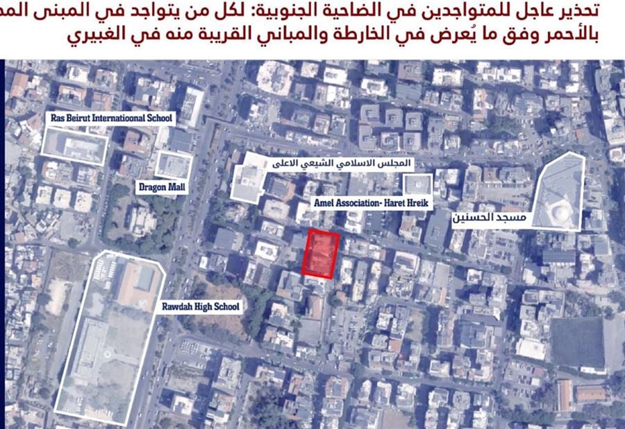 #عاجل إلى جميع السكان المتواجدين في منطقة الضاحية الجنوبية وتحديدًا في المباني المحددة في الخرائط المرفقة والمباني المجاورة لها في منطقة الغبيري