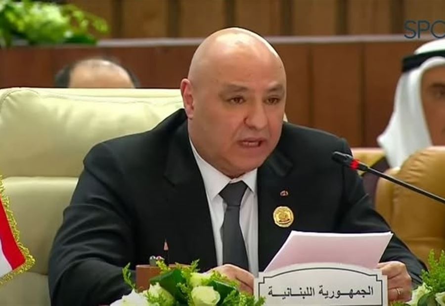 وفي بداية كلمته، قال عون: "قد أكون آخر الوافدين إلى مجلسكم، وهذا لا يخولني إعطاء الدروس عن فلسطين، موضوع قمتنا وأمانتنا"، مؤكداً أن حضوره يمثل شهادة حياة تمتد لأكثر من أربعين عاماً كجندي في خدمة وطنه وشعبه.