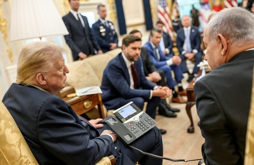 نشر البيت الأبيض صورًا من اللقاء الذي جمع الرئيس الأميركي دونالد ترامب ورئيس الوزراء الإسرائيلي بنيامين نتنياهو خلال اعتذار الأخير لدولة قطر عن قصف الدوحة.