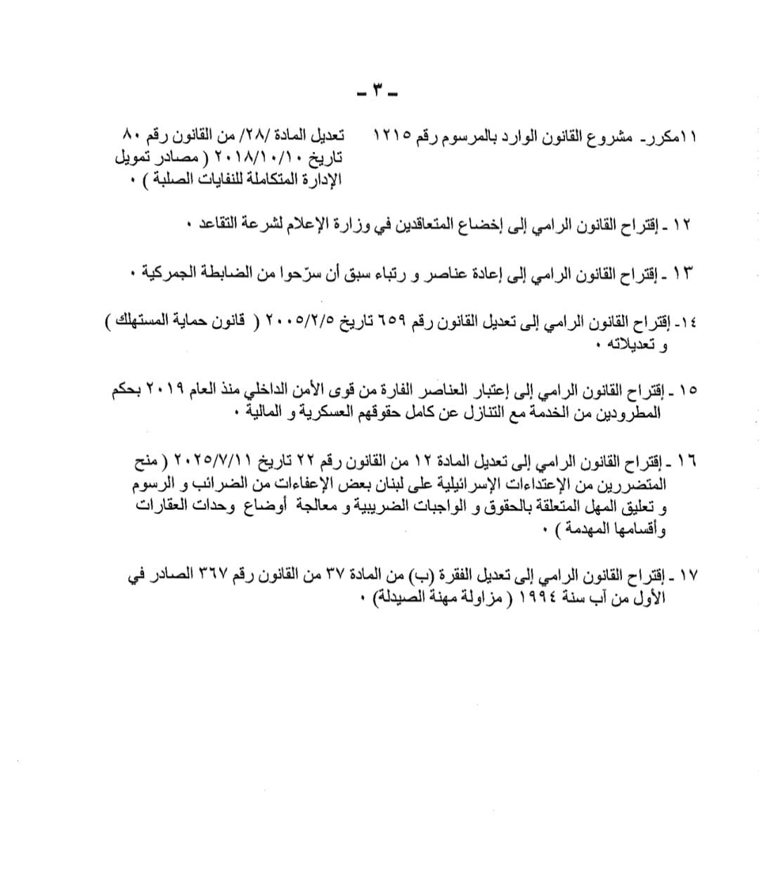 يعقد مجلس النواب جلسة عند الساعة 11 قبل الظهر من نهار الثلاثاء 28 تشرين الأول 2025، وذلك لمتابعة درس مشاريع واقتراحات القوانين المدرجة سابقًا على جدول أعمال جلسة 29 أيلول.
