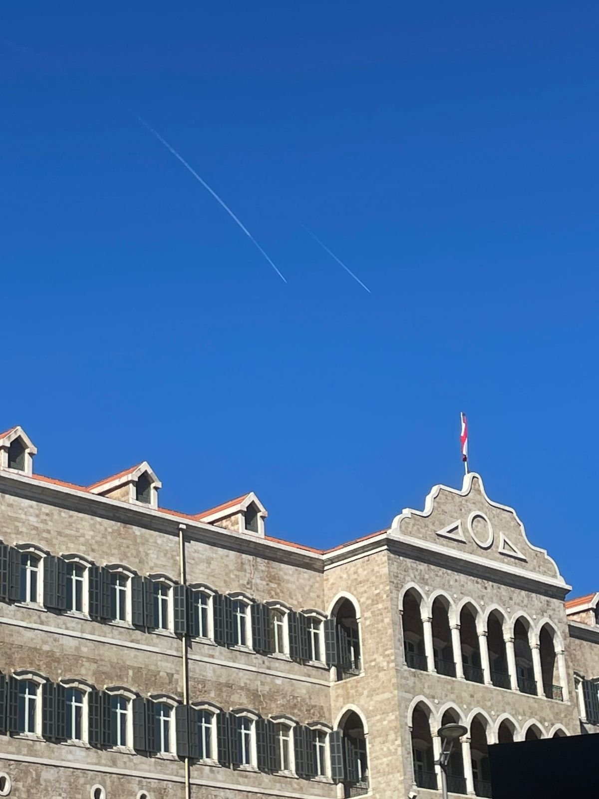 انتشر على وسائل التواصل الاجتماعي، اليوم الخميس، مقطع فيديو يُظهر تحليقًا للطيران الحربي الإسرائيلي فوق السراي الحكومي في بيروت.