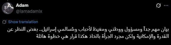 آدم: "بيان وطني ومُغِيظ لأحباب إسرائيل… حتى لو القدرة محدودة، الجرأة بحدّ ذاتها خطوة كبيرة."