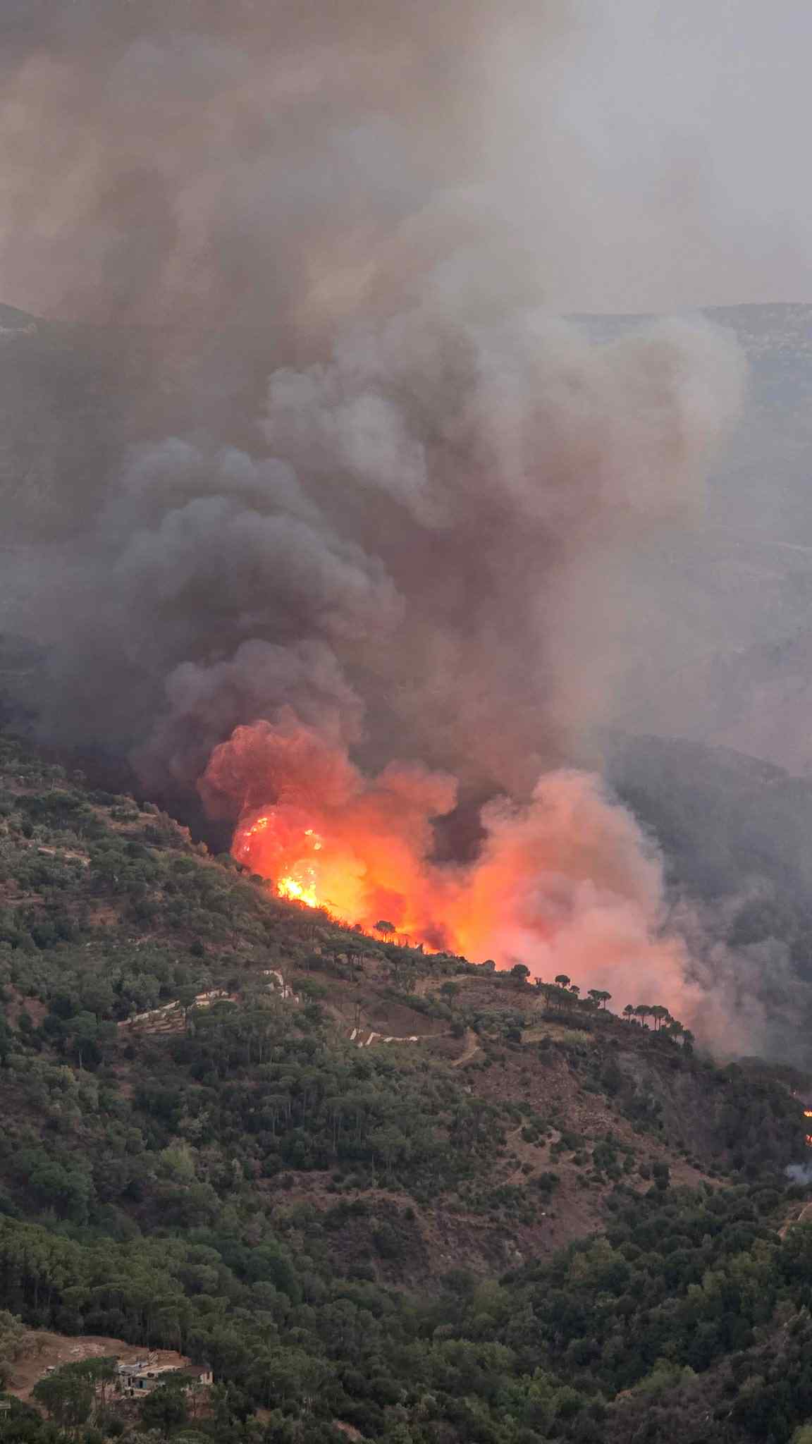 ويواصل عناصر الدفاع المدني عمليات الإطفاء بمؤازرة الجيش اللبناني، الذي يستقدم الطوافات الجوية لإخماد الحرائق والحدّ من انتشارها، في وقت يستمر الحريق في التوسع بسرعة.