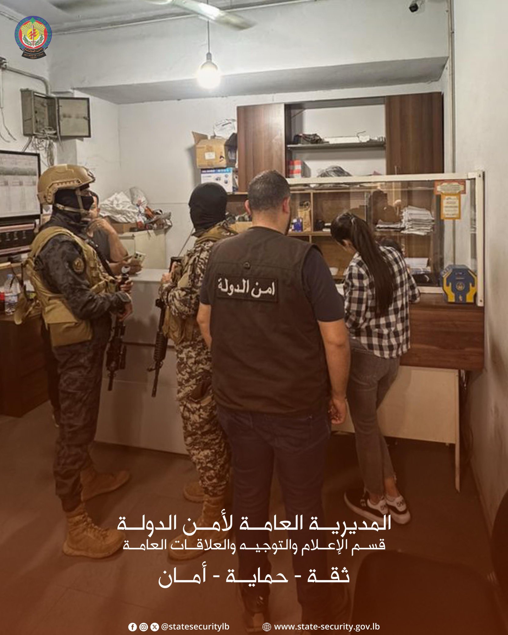 صدر عن المديريّة العامّة لأمن الدّولة-قسم الإعلام والتوجيه والعلاقات العامّة البيان جاء فيه: " نفذت مديرية جبل لبنان الاقليمية ، وبمؤازرة من مديرية الاستعلام والعمليات الخاصة ومصلحة حماية المستهلك في وزارة الاقتصاد والتجارة، كشفاً ميدانياً على المولدات الكهربائية الكائنة في مناطق الأوزاعي، حارة حريك، المريجة، والليلكي".