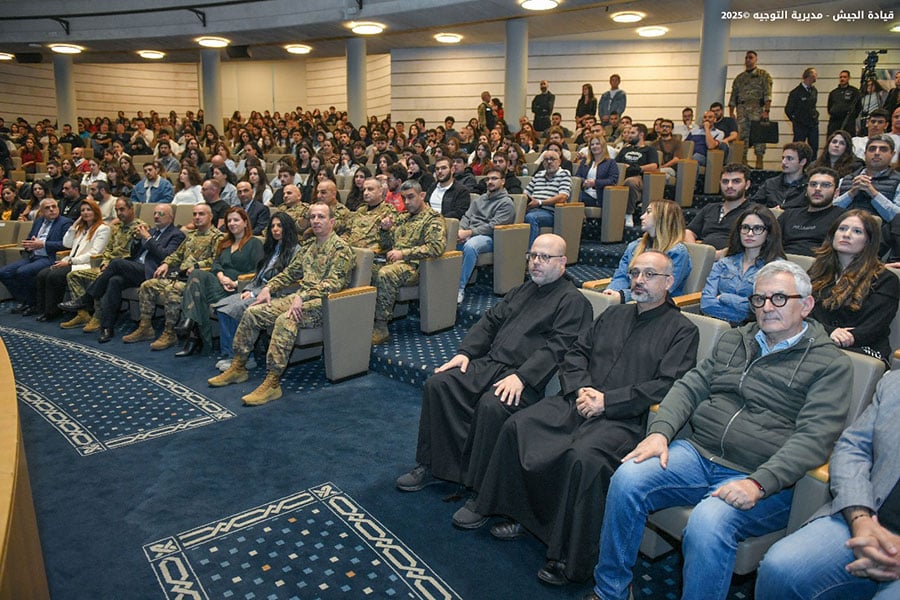 حضر الجلسة رئيس الجامعة الأب البروفسور جوزيف مكرزل، إلى جانب الأساتذة والطلاب، وعقيلة قائد الجيش وعدد من الضباط، في لقاء أتى ليؤكد الدور الوطني للمؤسسة العسكرية وحضورها بين الجيل الجديد.