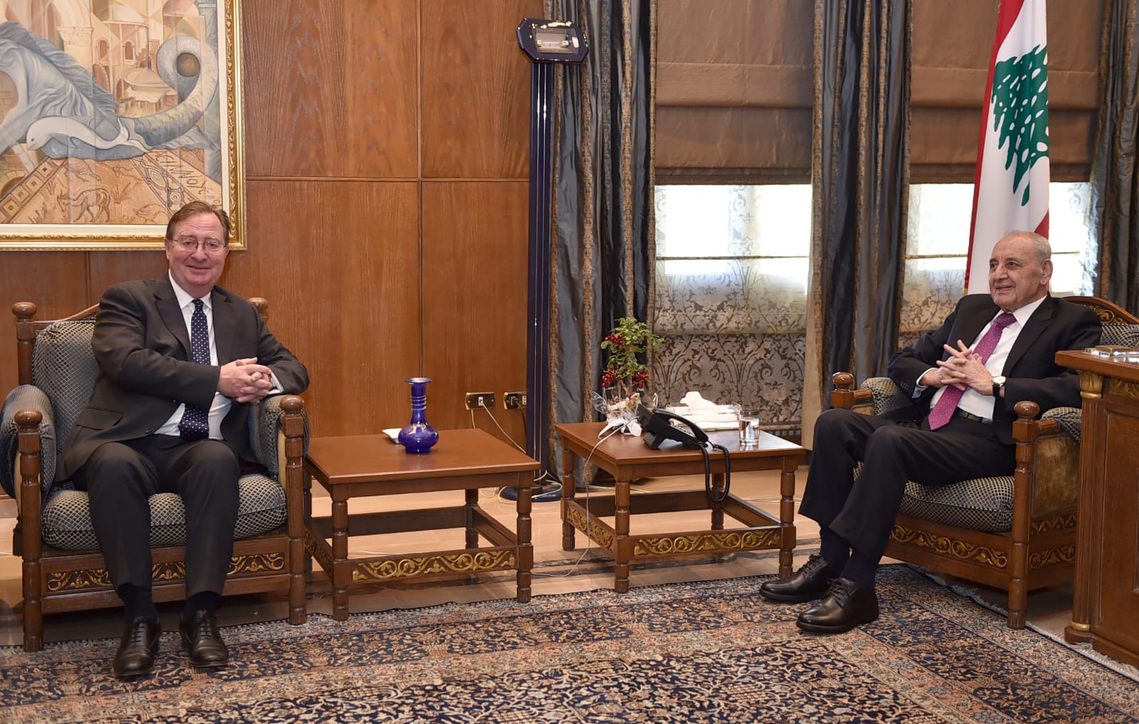 كما استقبل بري السفير البريطاني في لبنان هاميش كاول، حيث جرى خلال الاجتماع عرض شامل للأوضاع العامة والعلاقات الثنائية بين لبنان والمملكة المتحدة، مع التطرق إلى عدد من الملفات المشتركة وسبل تعزيز التعاون بين الجانبين خلال المرحلة المقبلة.