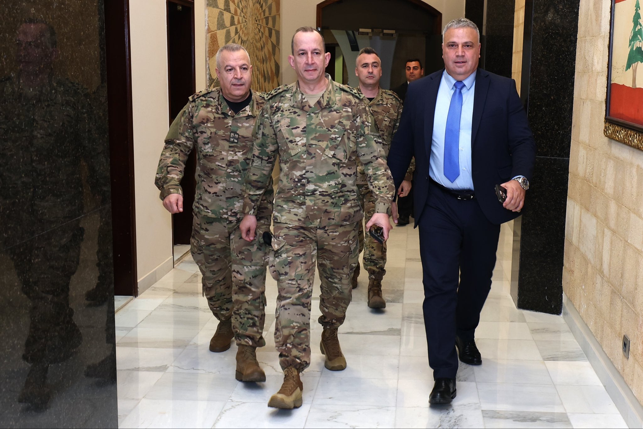 كما عرض قائد الجيش التقرير الشهري المتعلّق بالمهمات التي ينفذها الجيش في جنوب الليطاني، والإجراءات الأمنية التي اتُّخذت خلال زيارة البابا لضمان حسن سيرها.