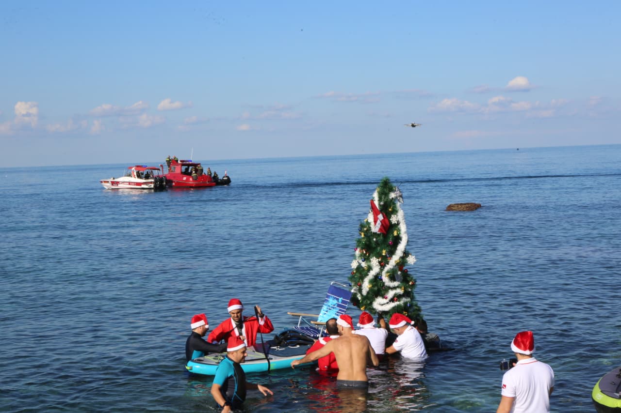 "بمناسبة الأعياد المجيدة، وضع عناصر الدفاع المدني، بالاشتراك مع بلدية العقيبة، وبمشاركة أندية الغطس: U961 Academy، وMarinor Divers، وAquaholic، شجرة الميلاد داخل مغارة على عمق ٣٠ مترًا في البحر قبالة شاطئ العقيبة."