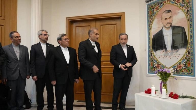 في إطار زيارة رسمية إلى العاصمة الروسية، قام وزير الخارجية الإيراني عباس عراقجي بإزاحة الستار عن نصب تذكاري أُقيم في مقر سفارة بلاده في موسكو، إحياءً لذكرى سلفه الوزير الراحل حسين أمير عبد اللهيان، الذي قضى في كارثة جوية في أيار 2024.