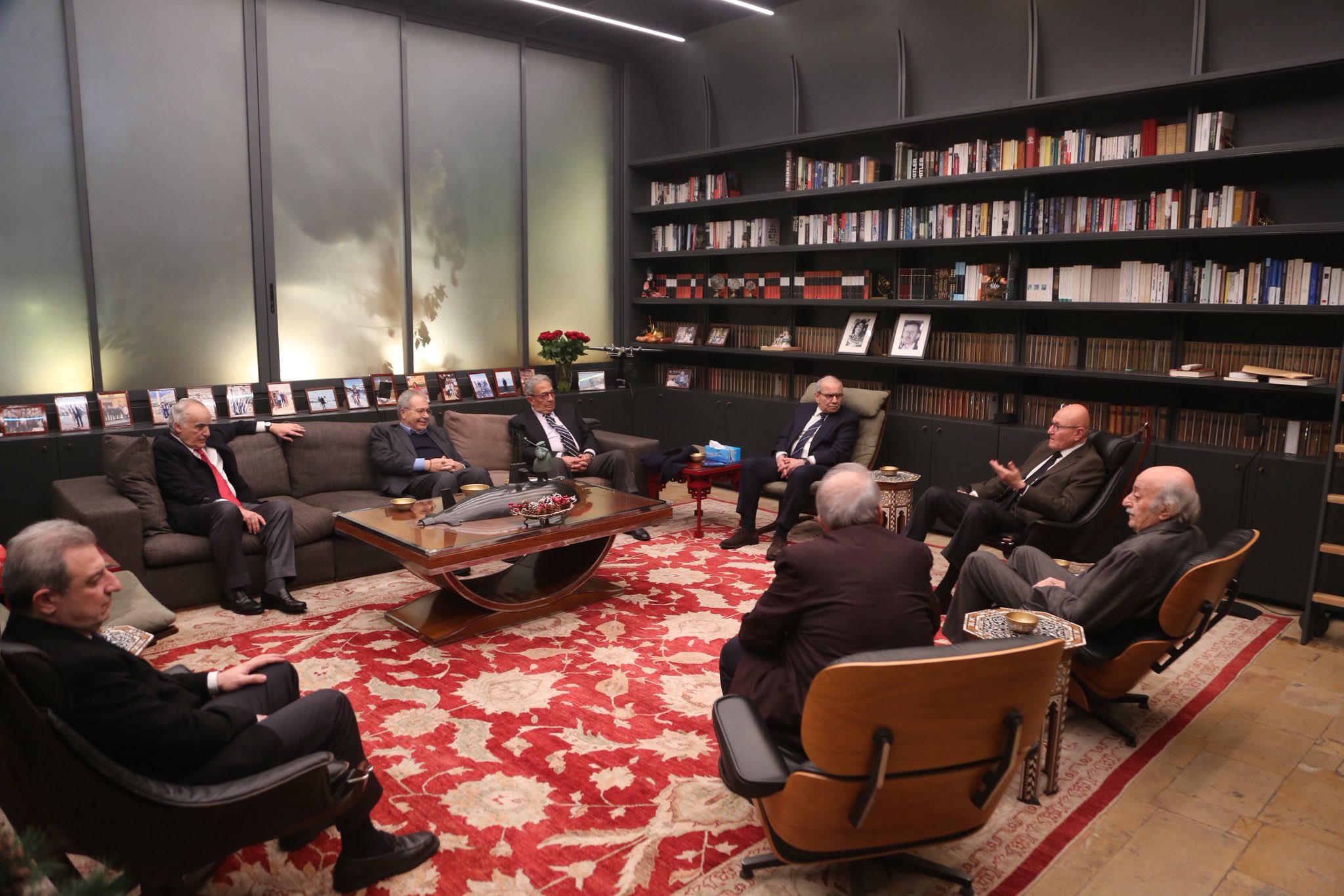 بحث الرئيس وليد جنبلاط آخر التطورات مع الأمين الأسبق لجامعة الدول العربية ووزير الخارجية المصرية الأسبق عمرو موسى، في كليمنصو، بحضور رئيس الحكومة نواف سلام، ودولة الرئيس تمام سلام، ونائب رئيس الحكومة طارق متري، ووزير الثقافة غسان سلامة، والنائبين مروان حمادة ووائل أبو فاعور.
