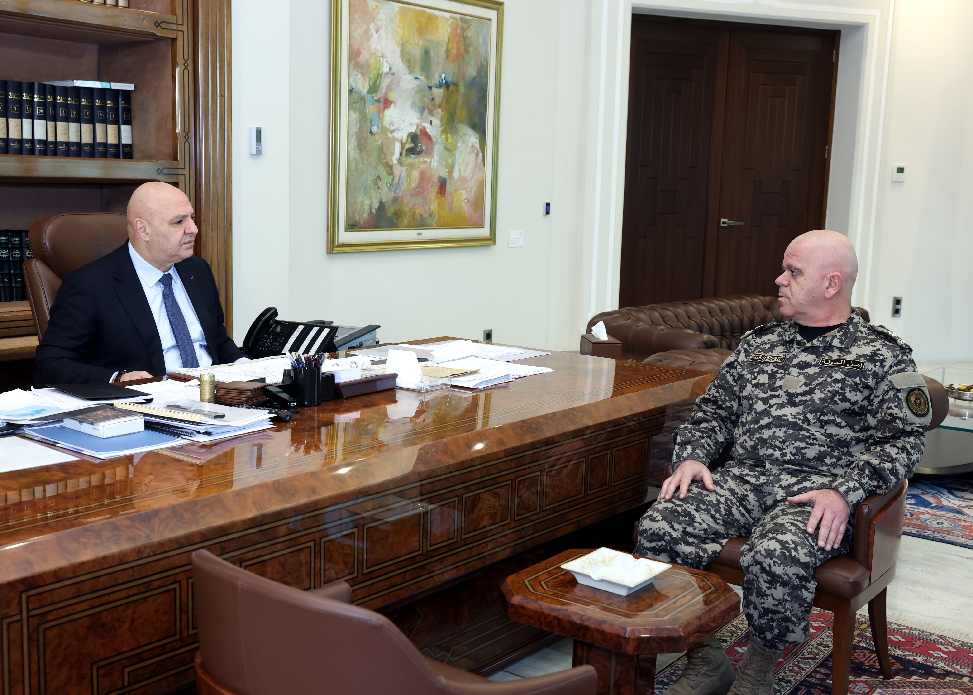 كما اطّلع رئيس الجمهورية من المدير العام لأمن الدولة اللواء الركن إدغار لاوندوس على عمل المديرية في مكافحة الفساد ومنع الرشاوى في الإدارات والمؤسسات العامة.