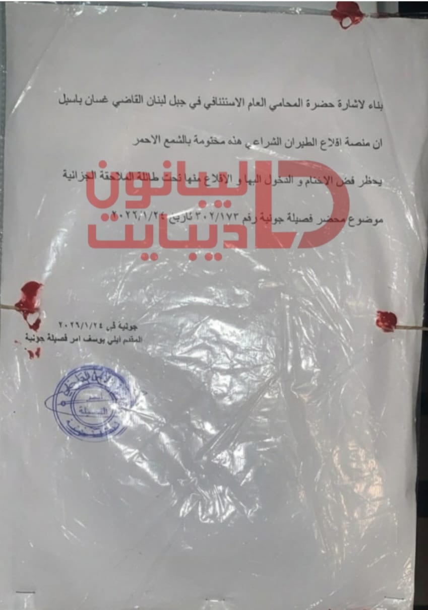 علم موقع "ليبانون ديبايت" أنّ المحامي العام الاستئنافي في جبل لبنان، القاضي غسان باسيل، أصدر إشارة قضائية تقضي بختم منصّة الإقلاع في منطقة حريصا بالشمع الأحمر، ومنع أي شخص أو نادٍ من تنفيذ أي عملية إقلاع منها، وذلك على خلفية حادث سقوط الطيّارين الشراعيين أحمد عبد الحي (سوري الجنسية)، حبيب مونو، وكريستوف حبيس، إضافة إلى الزبائن المرافقين لهم، إلى حين انتهاء التحقيقات واتخاذ الإجراءات القانونية بحق المخالفين.