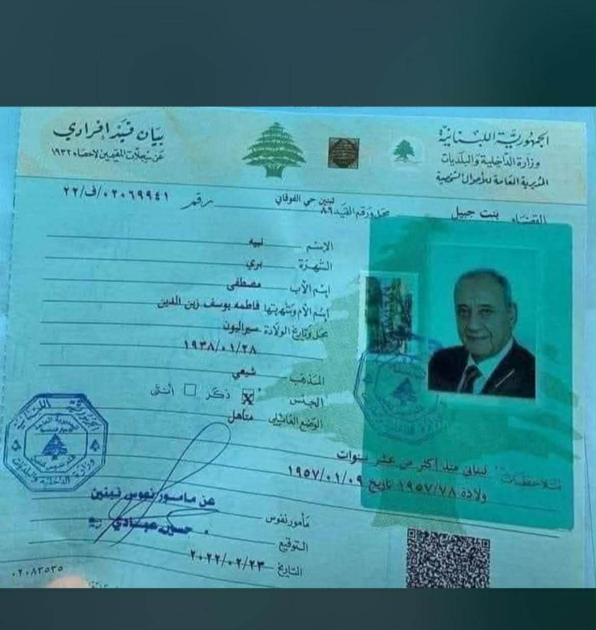 غير أنّ التحقّق والتدقيق أظهرا أنّ إخراج القيد المتداول غير صحيح. وحرصًا على الدقّة، دخل موقع “ليبانون ديبايت” إلى الموقع الرسمي لمجلس النواب، ليتبيّن أنّ رئيس المجلس نبيه بري من مواليد 4 أيار 1938 في سيراليون – أفريقيا، ما ينفي بشكل قاطع ما جرى تداوله عن عيد ميلاد في 28 كانون الثاني.