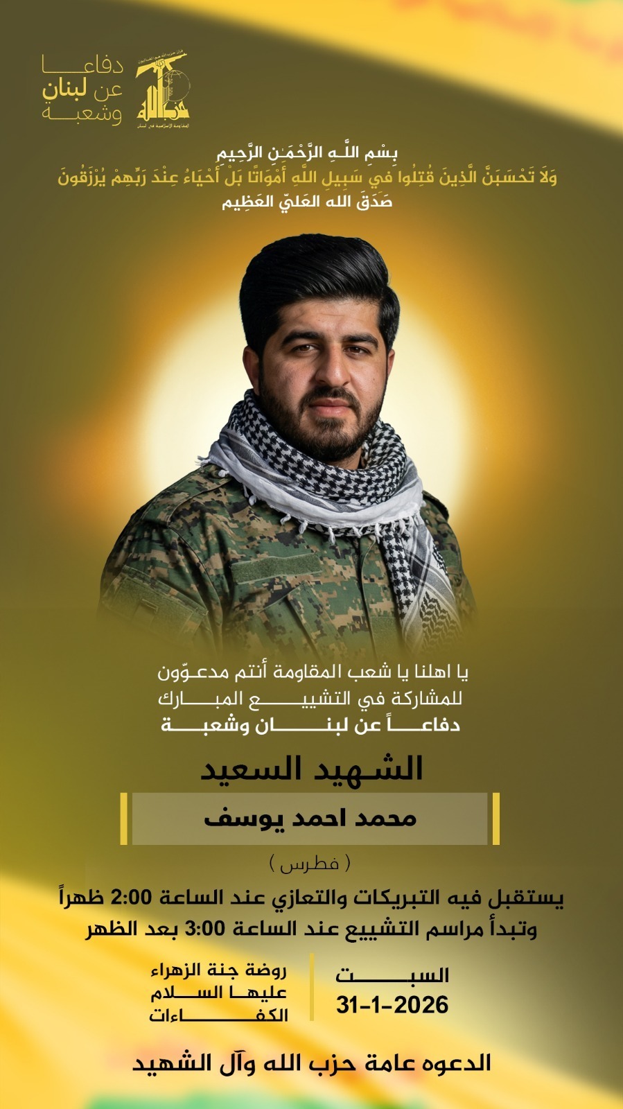 وأضاف المراسل أنّ الغارة أسفرت عن وقوع شهيد، وهو محمد أحمد يوسف.