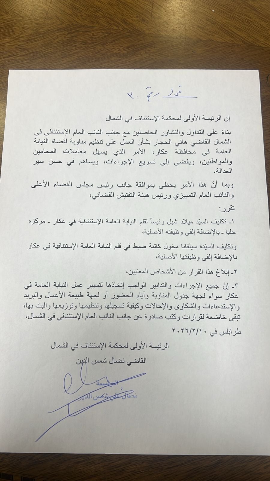 وأوضح أنه تقدّم باعتراض على اختيار رؤساء الأقلام، مشيرًا إلى أن رئيس قلم حلبا مسيحي، ورئيس قلم القبيات مسيحي، وبعد افتتاح محكمة السير تم تعيين رئيس قلم مسيحي أيضًا، وكذلك رئيس قلم النيابة العامة، إضافة إلى أن رئيس قلم محكمة السير مسيحي.