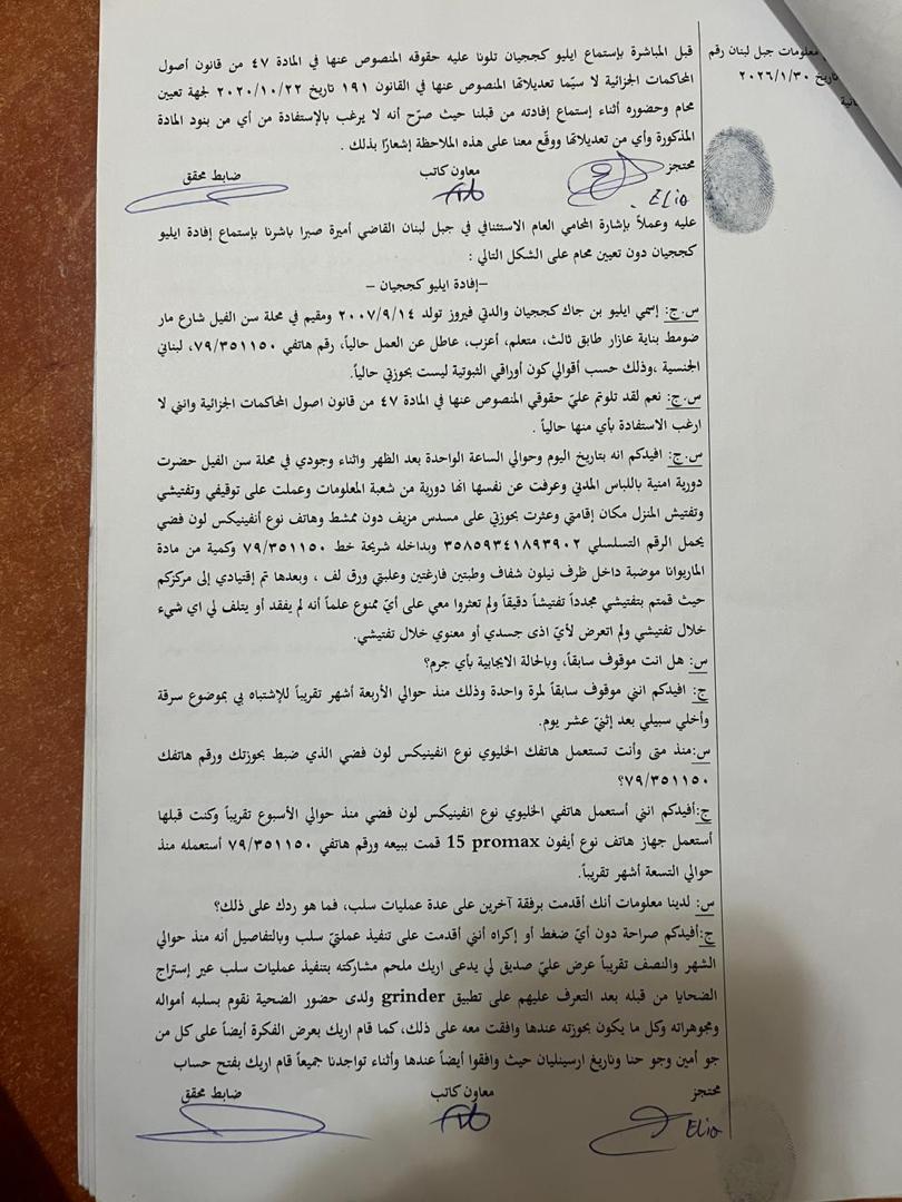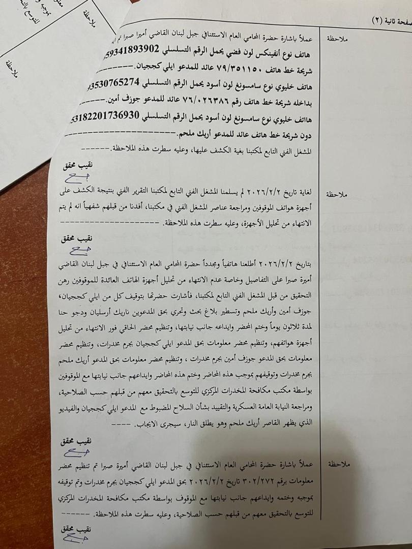 وبإشراف القاضية أميرة صبرا، استُكملت الإجراءات الفنية، حيث جرى إخضاع الهواتف المضبوطة للكشف والتحليل، بهدف تحديد كامل الشبكة، وعدد العمليات والضحايا، وكشف أي ارتباطات إضافية محتملة. كما جرى تنظيم محاضر مستقلة بجرائم المخدرات، وإحالة الموقوفين إلى قاضي التحقيق الأول في جبل لبنان القاضية ندى الأسمر لمتابعة التحقيق معهم.