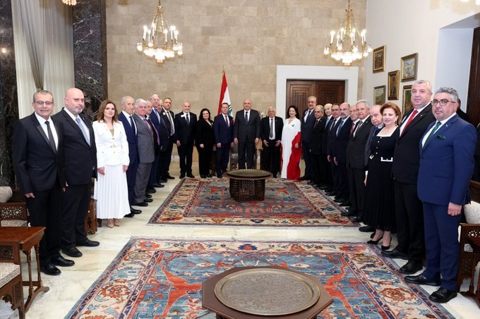 وفي سياق منفصل، استقبل الرئيس عون وفدًا من جمعية أندية "الليونز"، حيث أكد أمامه أنّ "خدمة الإنسانية تبقى القيمة الأسمى، وهذا ما يُبقي لبنان واقفًا بوجه الصعاب والتحديات".