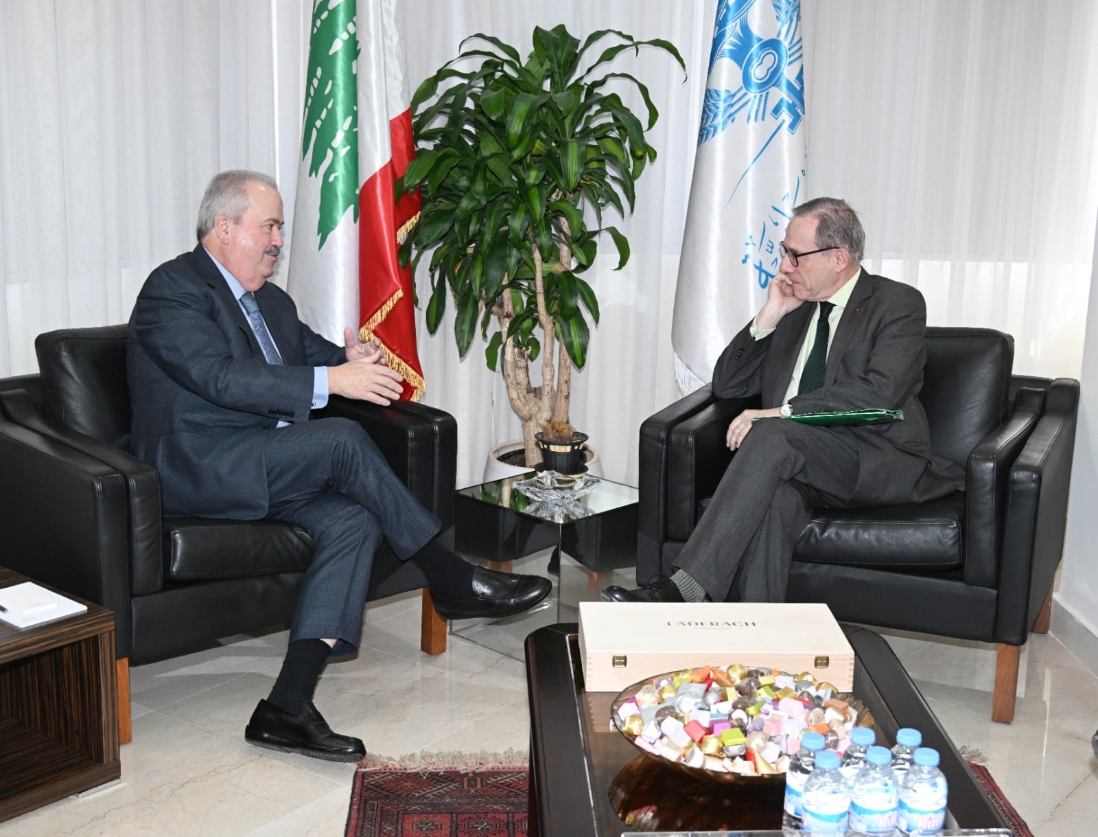 استقبل وزير المال ياسين جابر المستشار الاقتصادي والمبعوث الخاص لرئيس الجمهورية الفرنسية جاك دو لا جوجي، في زيارة عمل عُقد خلالها اجتماع موسّع حضره رئيس القسم الاقتصادي الإقليمي فرانسوا سبورير، والملحقة الاقتصادية والمالية كنزا وزاني، والمستشار المالي في السفارة الفرنسية فينسان دو دري، إلى جانب مدير المالية العامة جورج معراوي، والمستشارين سمير حمود وزينة قاسم وكلودين كركي، والخبير من الخزانة الفرنسية عبدالنور براهمي، والخبير الفني الدولي أدريان هارتمان.