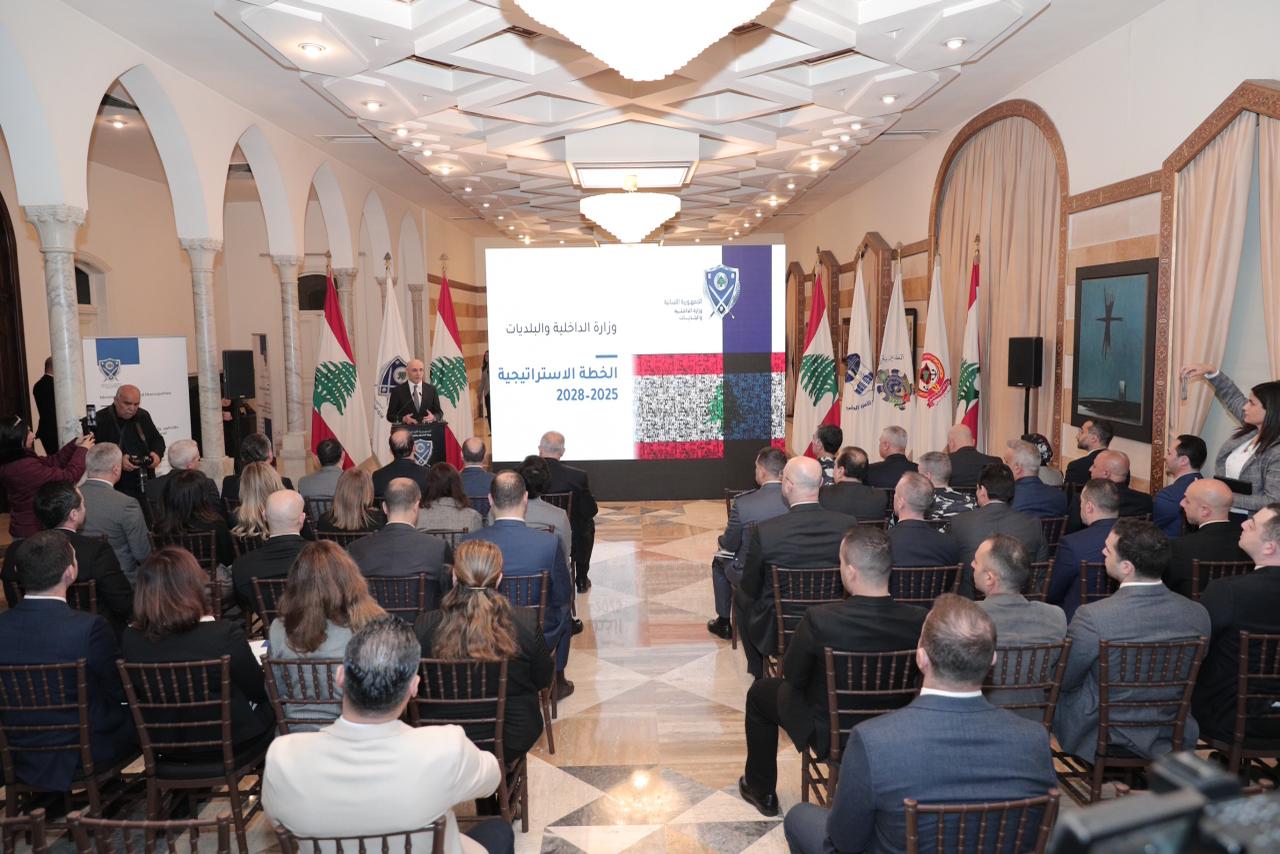 أطلق وزير الداخلية والبلديات أحمد الحجار، قبل ظهر اليوم في مبنى الوزارة، الخطة الاستراتيجية للأعوام 2025-2028، في حضور المحافظين والمديرين العامين للمديريات والأجهزة الأمنية والإدارية التابعة للوزارة، إلى جانب عدد من الموظفين وأعضاء فريق العمل.