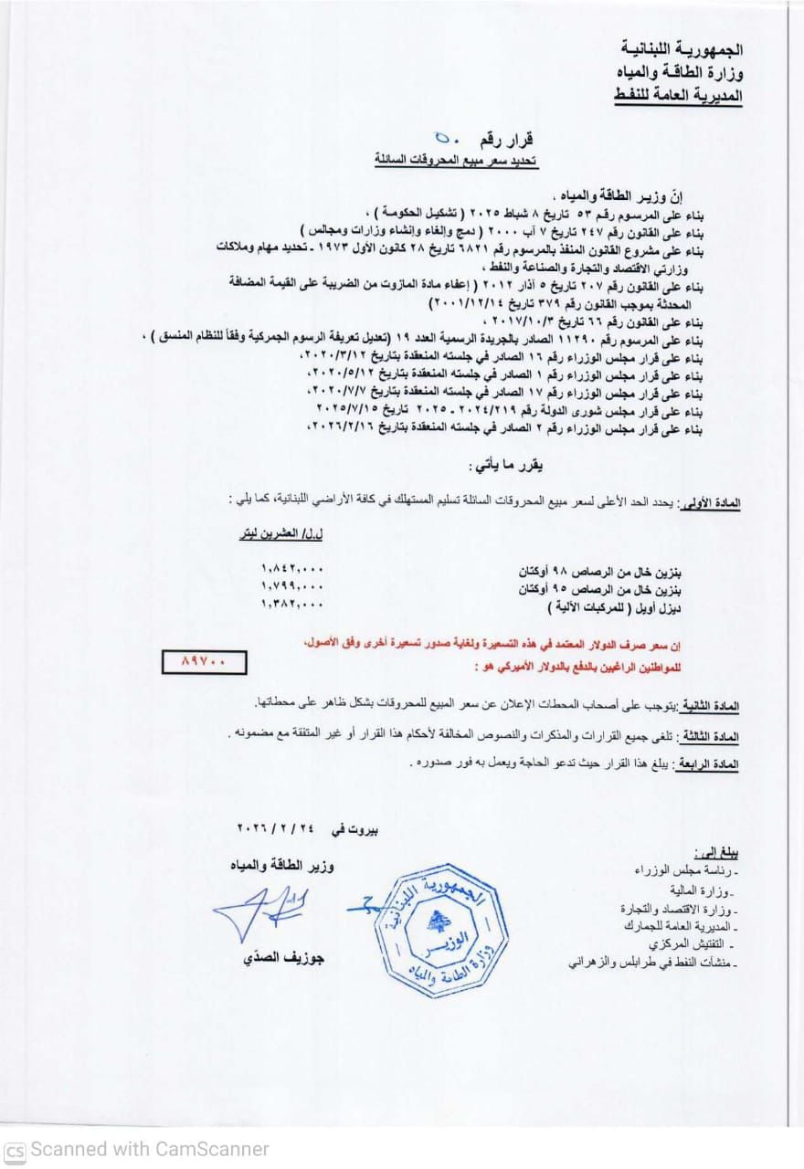 صدر عن وزارة الطاقة والمياه صباح اليوم الثلاثاء, جدولٌ جديد للمحروقات، وجاءت الأسعار على الشّكل التالي: