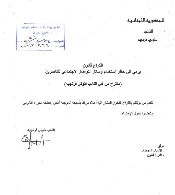 وأوضح أنّ "الاقتراح ينسجم مع ما نصّت عليه اتفاقية حقوق الطفل (Convention on the Rights of the Child – CRC) لجهة التزام الدول بحماية الأطفال من المخاطر الرقمية"، معتبرًا أنّ "هذا التوجّه يضع لبنان ضمن الإطار القانوني المتماهي مع المعايير الدولية المعتمدة في هذا المجال".