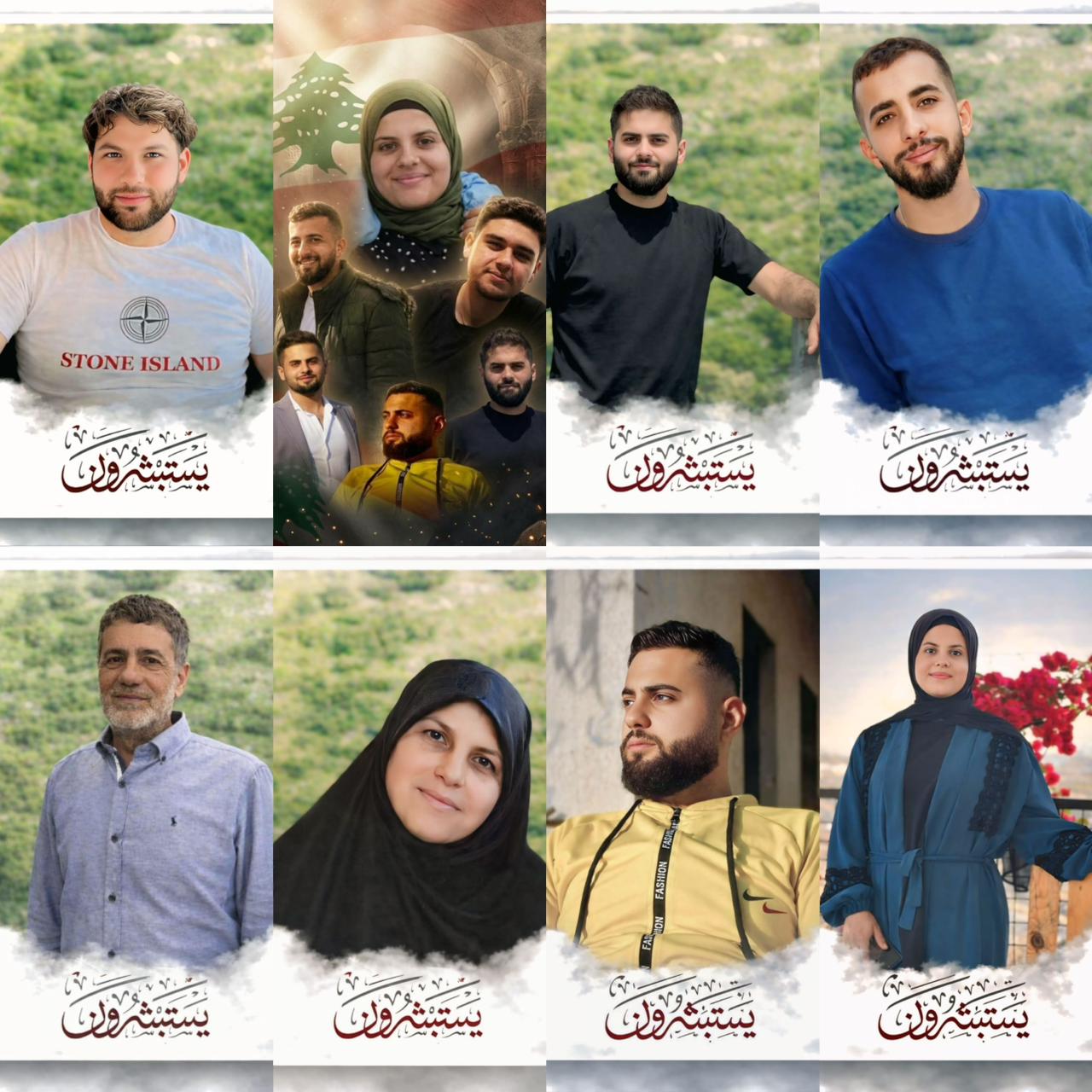 وأفادت المعلومات أن الغارة أسفرت عن استشهاد كمال عز الدين وزوجته زهرة عز الدين وأولادهما حسن ومحمود وجنى كمال عز الدين، إضافة إلى أبناء عمومتهم سامر عز الدين وهيثم عز الدين، فضلاً عن أحد أقاربهم مهدي أبوريا.
