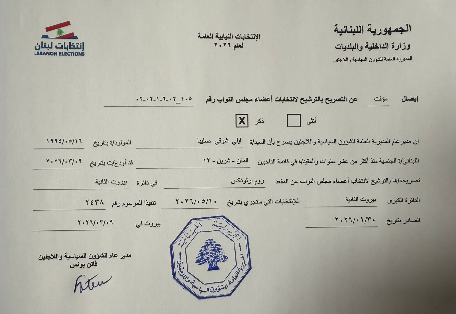 وأشار البيان إلى أن تقديم الترشيح يشكل رسالة سياسية واضحة بضرورة الحفاظ على الاستحقاق الانتخابي وعدم القبول بتمديد طويل للمجلس النيابي.