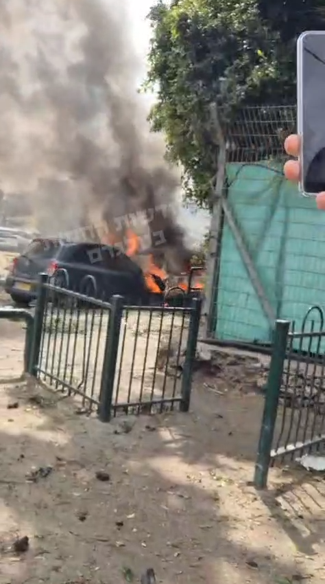وأظهرت مقاطع فيديو متداولة اشتعال النيران في عدد من السيارات نتيجة سقوط الشظايا في مناطق مأهولة.